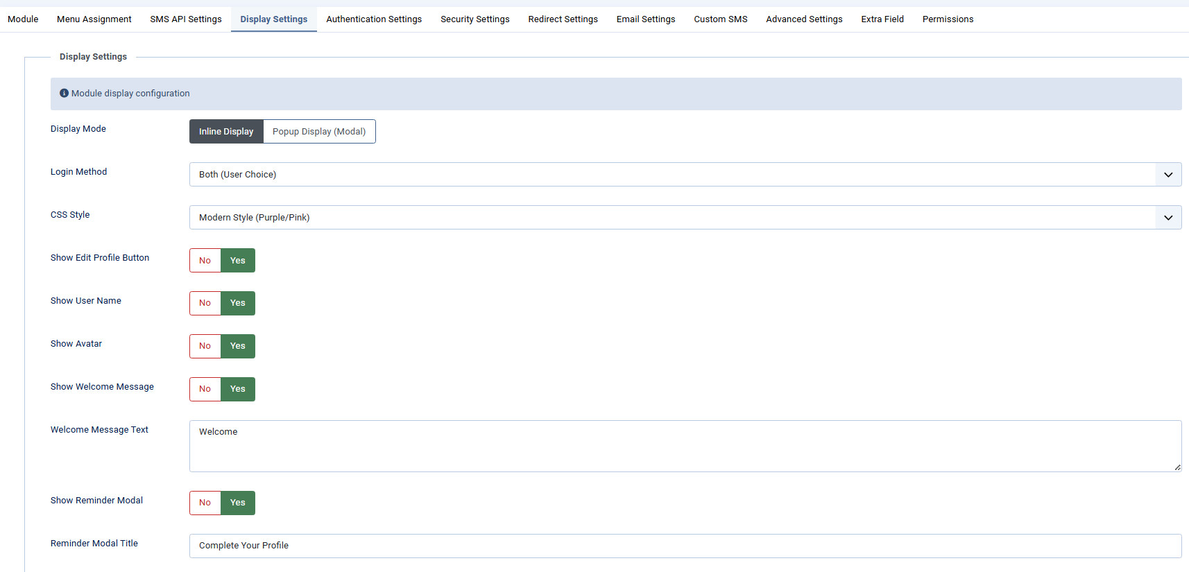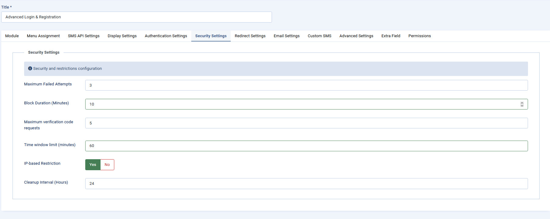 کد تأیید، قلب عملکرد ماژول است. شما میتوانید طول، مدت اعتبار و نحوه نمایش آن را تعیین کنید.