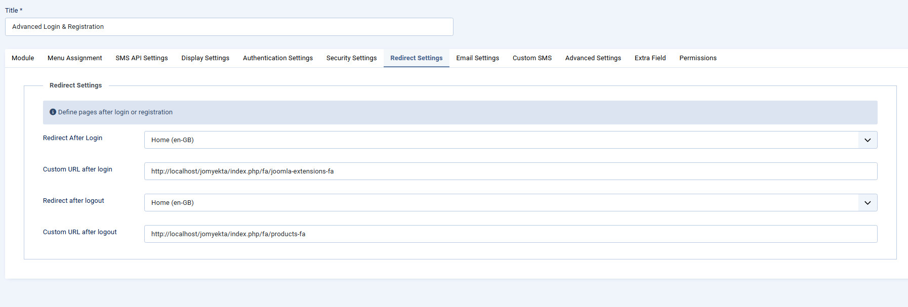 همچنین میتوانید مسیر هدایت کاربر را بعد از ورود یا خروج مشخص کنید؛ مثلاً به صفحه پروفایل یا داشبورد شخصی.